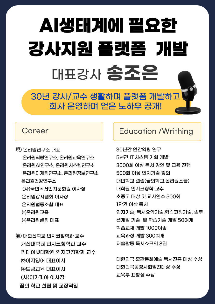생성 AI시대에 새로운 강사 활동과 수익모델이 필요합니다. 이번세미나에서 만나보세요.